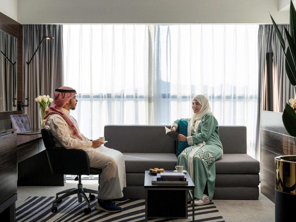 Comfortable Accommodations: Millennium Taiba Hotel in Al Madinah offers family rooms with air-conditioning, private bathrooms, and city views. Each room includes a work desk, TV, and free toiletries. Dining Experience: Guests can enjoy international cuisine at the family-friendly restaurant, featuring a traditional and modern ambience. Breakfast options include continental, American, buffet, and halal. Facilities and Services: The hotel provides a fitness centre, free WiFi, paid shuttle service, and a 24-hour front desk. Additional amenities include a business area, bicycle parking, and free on-site private parking. Prime Location: Located 15 km from Prince Mohammad bin Abdulaziz International Airport, the hotel is an 8-minute walk from Al-Masjid an-Nabawi. Nearby attractions include Qiblatain Mosque and Mount Uhud.